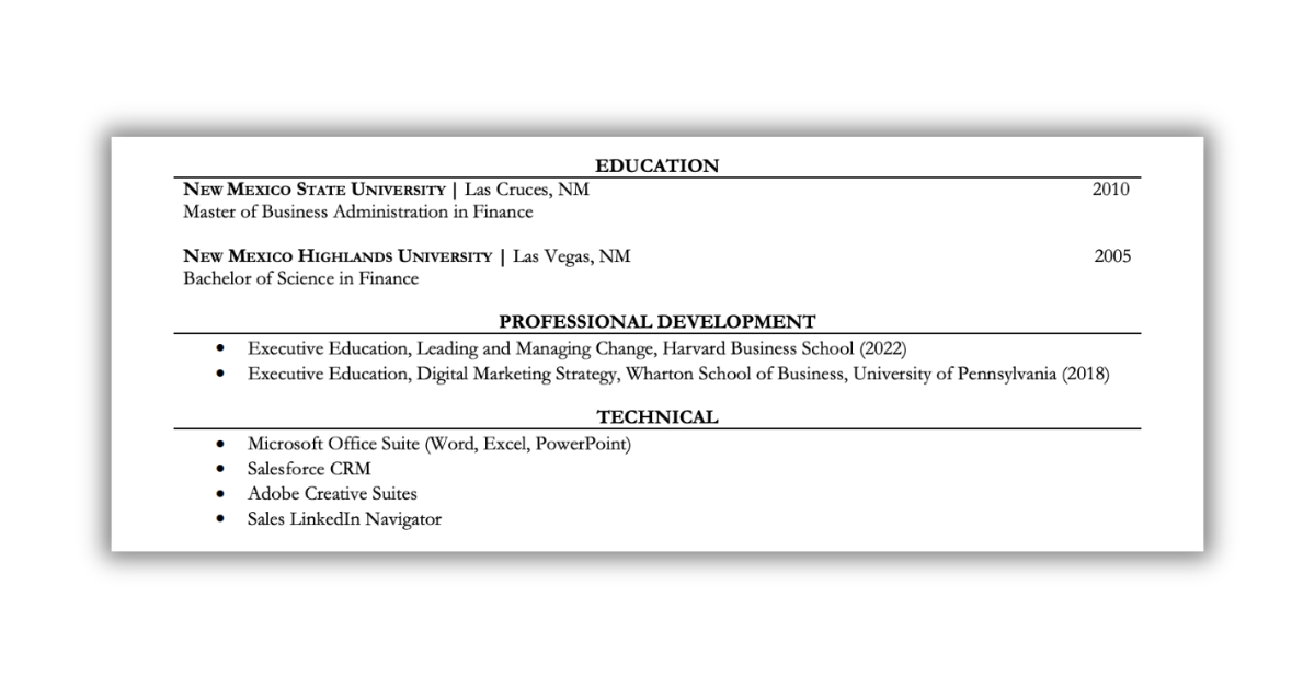 Creating a separate section on your resume helps make your learning efforts easy to find and scan.