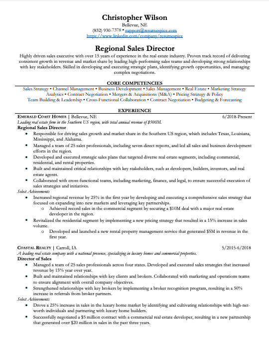 ✨ Tip: Update your core competencies section to align with each job application!