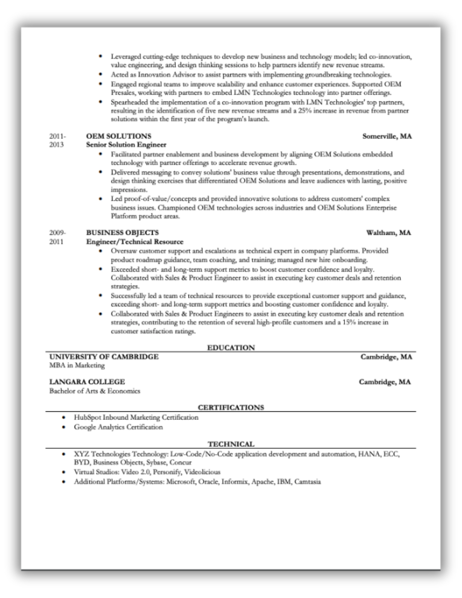 - Utilize ChatGPT, professional resume writers, and reference example resumes for guidance